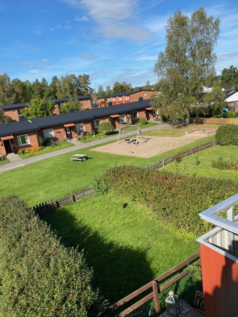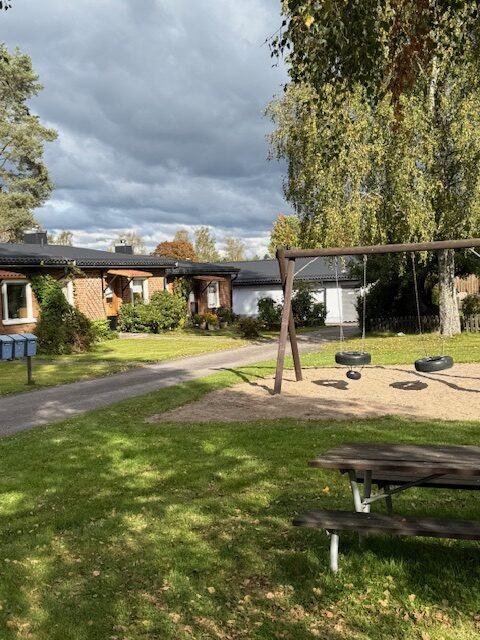 Varje hem har en eller två uteplatser, och många har dessutom en härlig uteplats under tak – perfekt för långa sommarkvällar. För barnfamiljer finns två lekparker med gungor och sandlådor, och för den som vill slippa egen tvättmaskin erbjuder vi en nyrenoverad tvättstuga med moderna maskiner, torktumlare och torkrum.